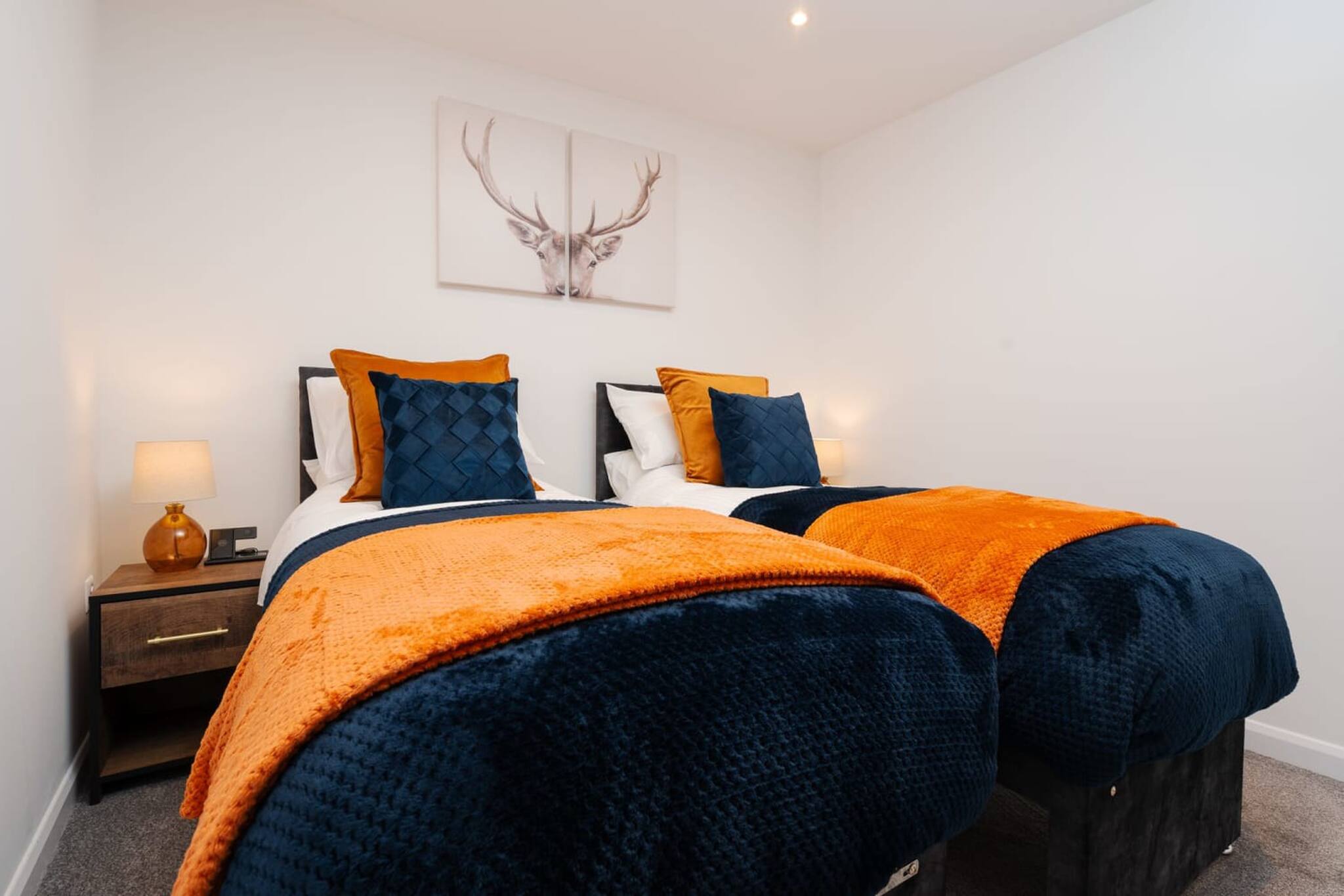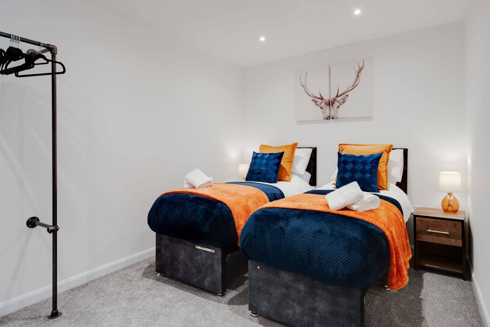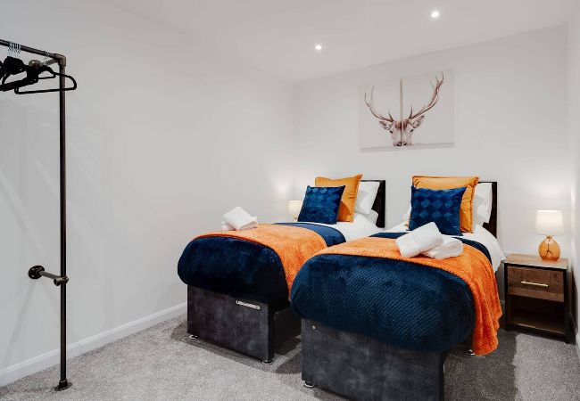 The second bedroom is at the end of the property and features two single beds, these can be pushed together if you wish. There is also ample storage space for your belongings. Modern décor and furnishings complete the room.