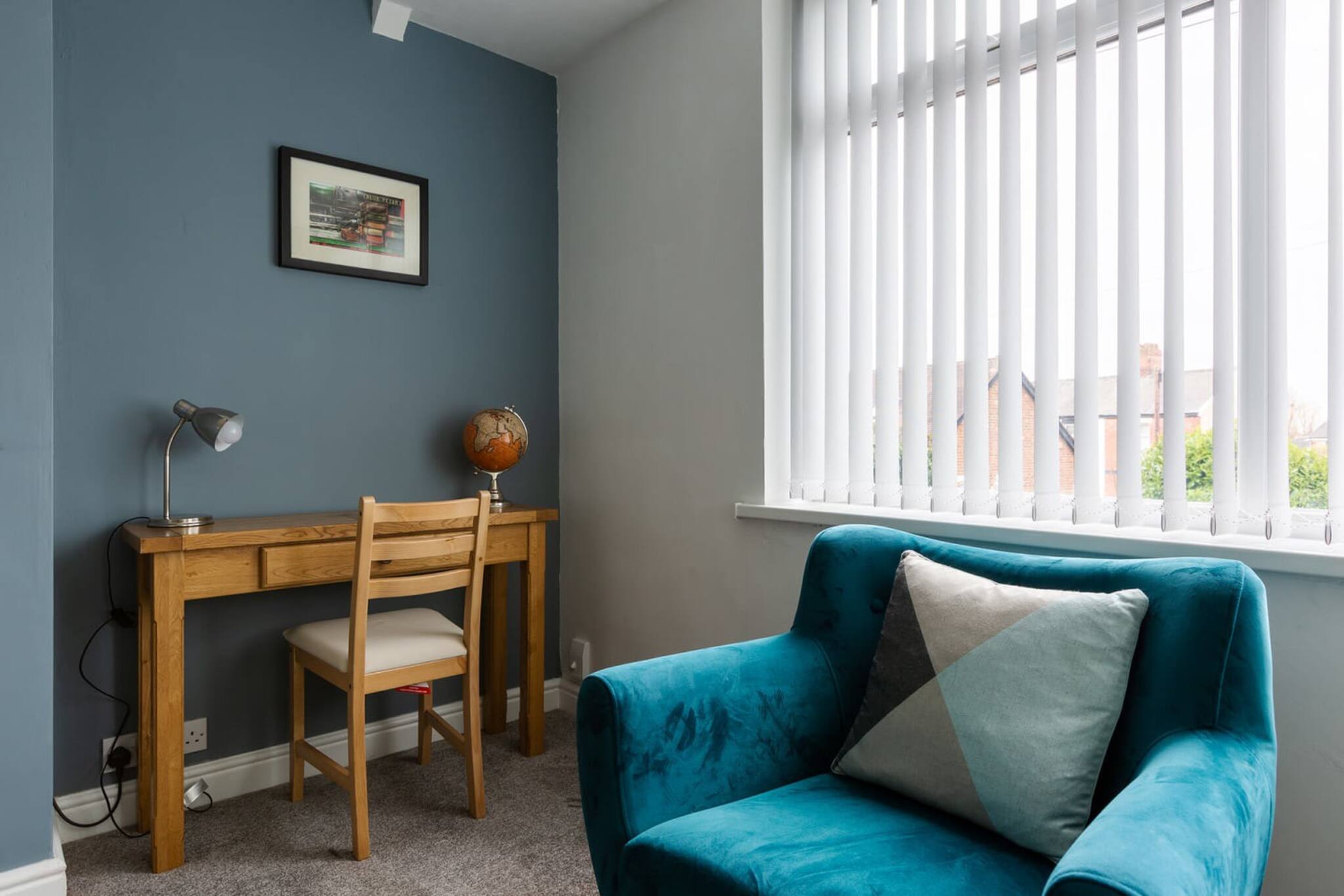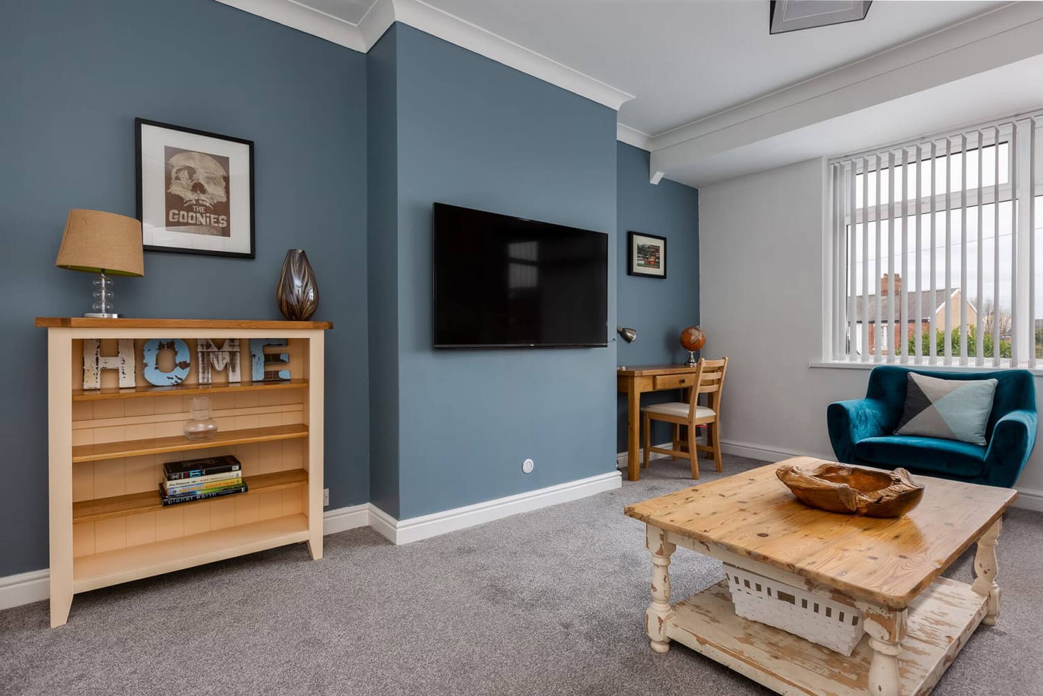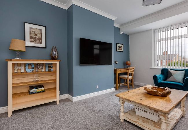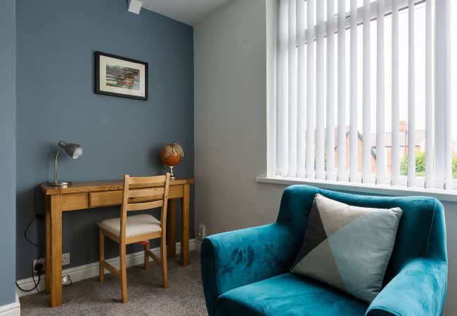 The living room has a Smart-TV, comfortable sofa, chair to relax in and a desk so that you can work at if needed.