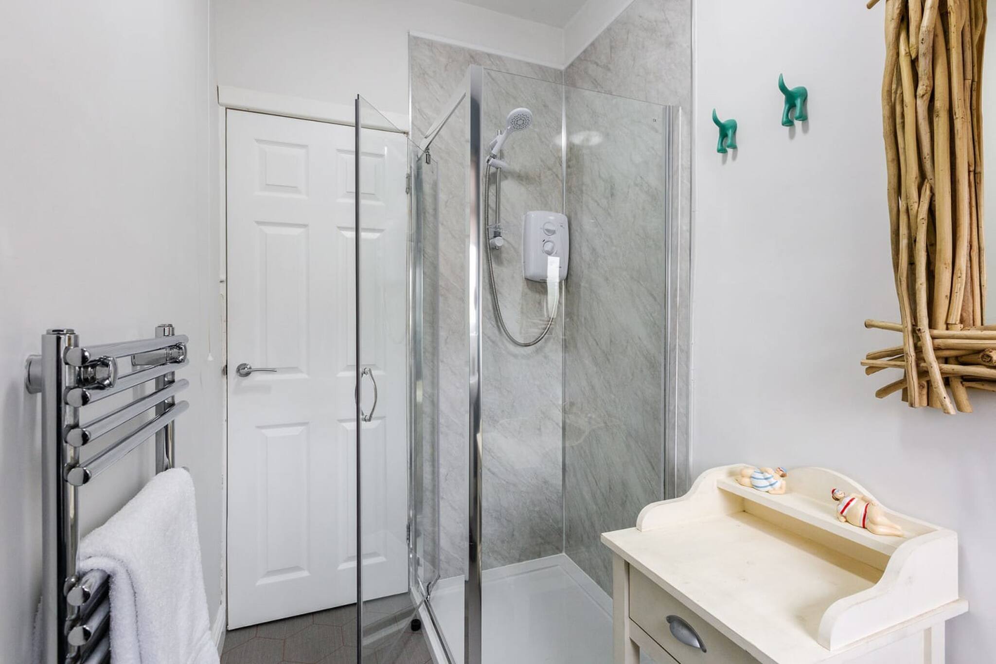 The second bedroom has two double beds, and storage for your luggage.