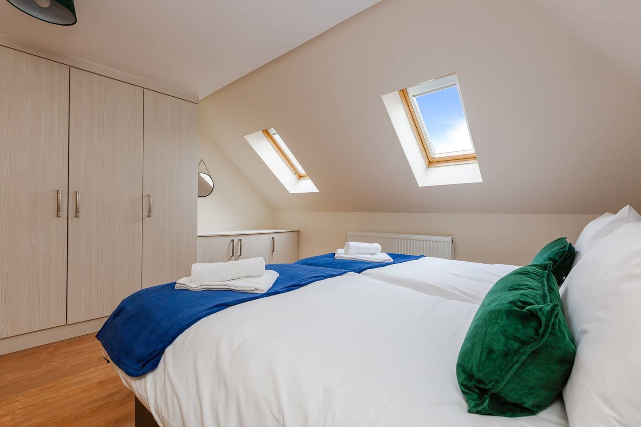 The second floor has three bedrooms. One bedroom has a double bed, another has three single beds and an en-suite bathroom and the other has one single bed. There is plenty of storage for your belongings and there is a family bathroom that has a bath, shower, toilet and sink.