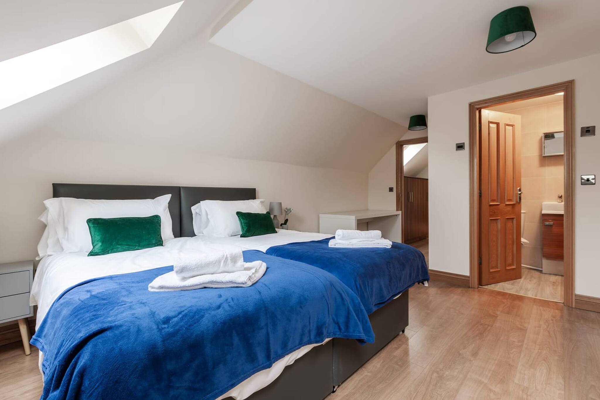 The third floor has two bedrooms with double beds and one has an en-suite bathroom.
