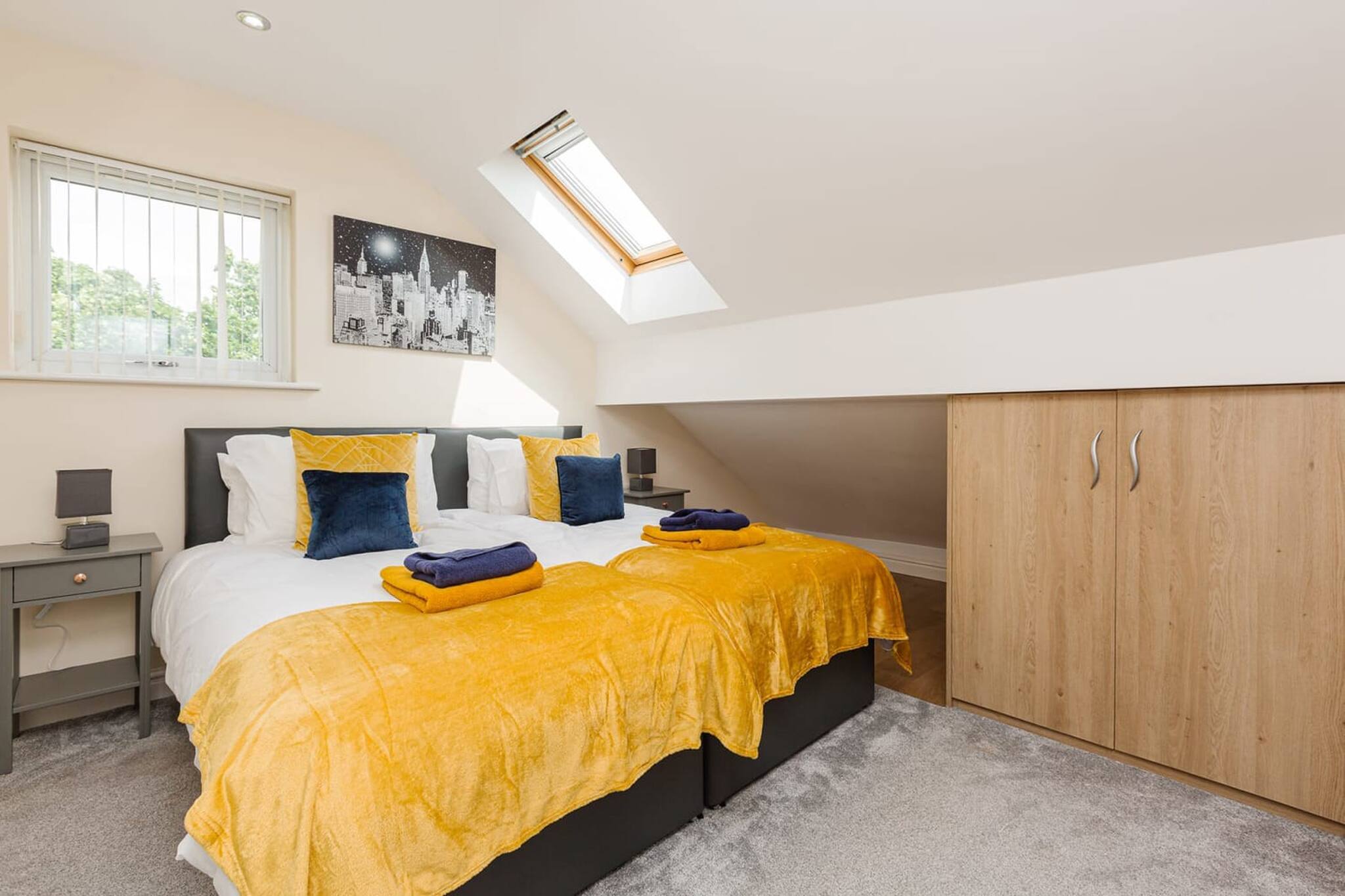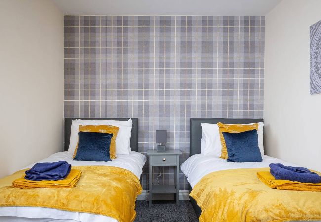 The second floor has a family bathroom with a bath, shower, sink and toilet. There are three bedrooms on the second floor, two of the bedrooms have 1 single bed each, the other room has two single beds that can be pushed together if you want.
