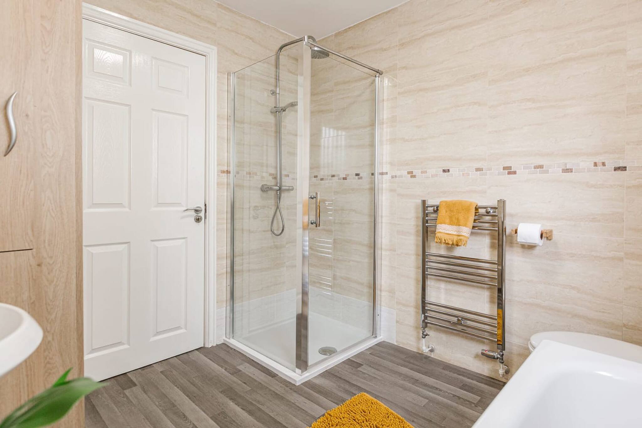 A very large property that contains 5 bedrooms and can sleep 7 people, there is a family bathroom, an en-suite bathroom and a downstairs bathroom.