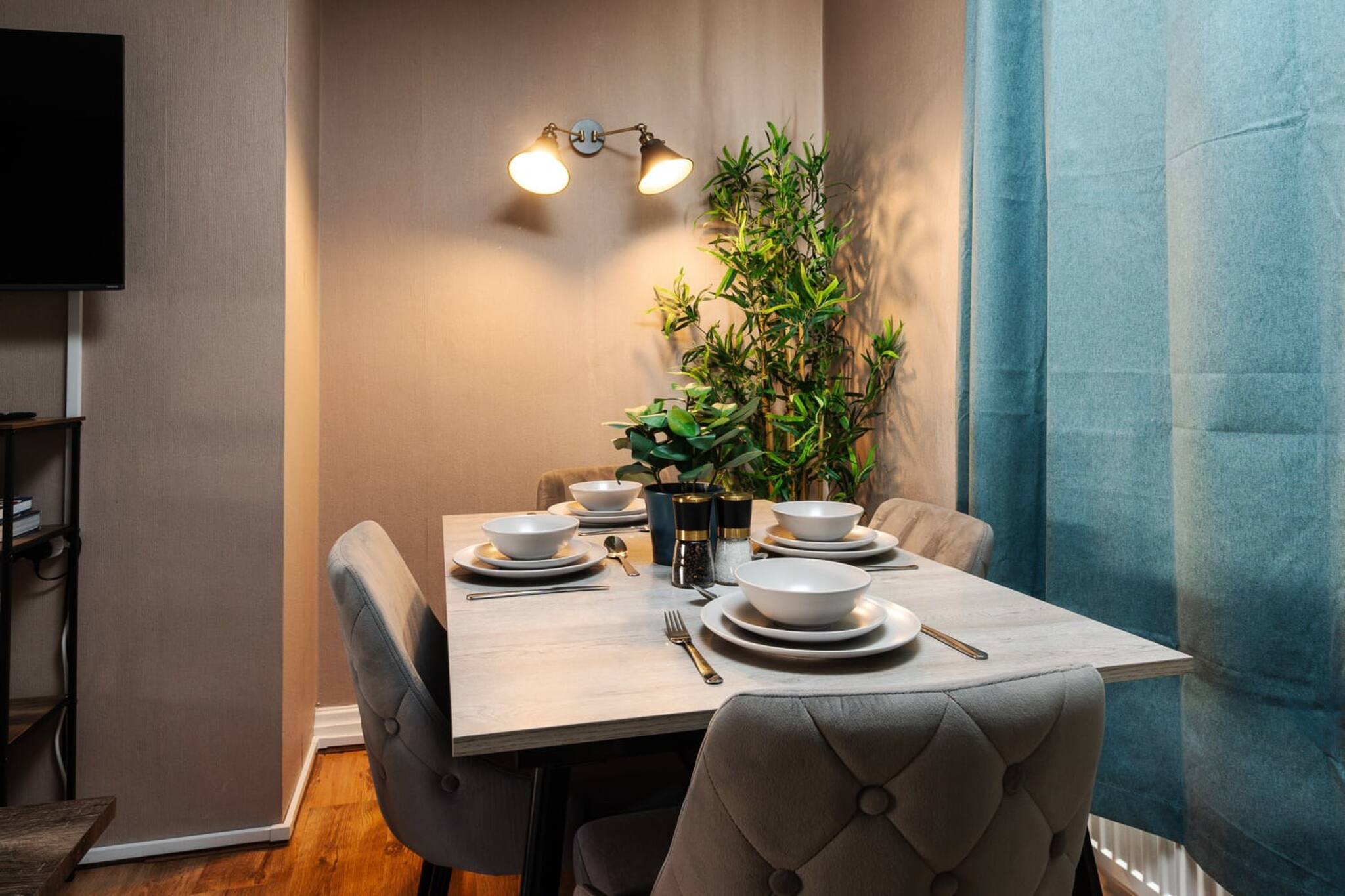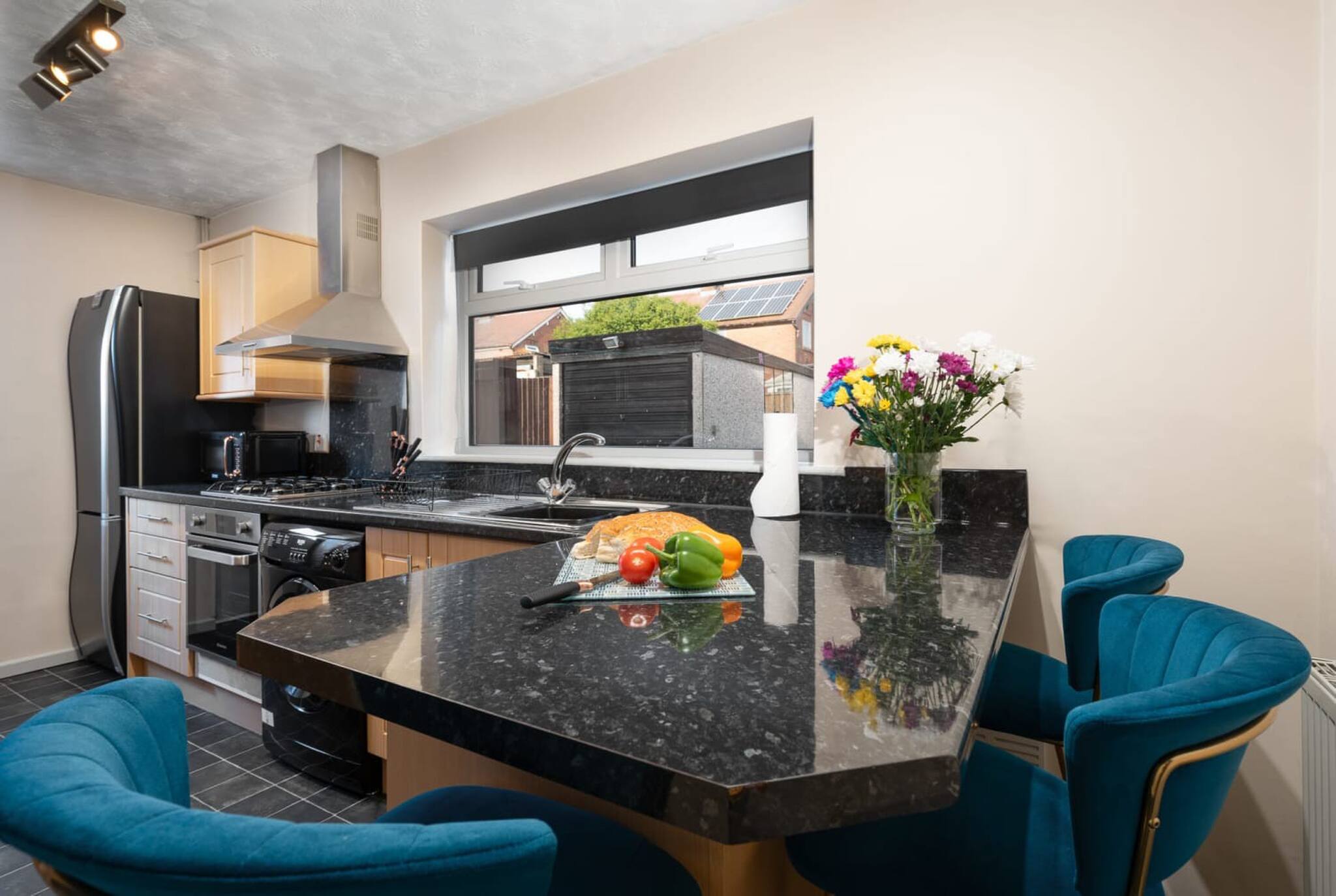 There is parking in front of the house or on-street, high-speed Wi-Fi, garden, dining table, Smart-TV and laptop friendly workspace.