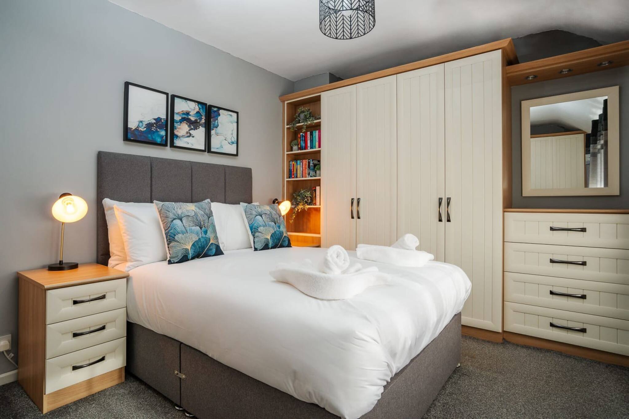 The master bedroom is stunning, with a double bed, built in wardrobes/storage and is tastefully decorated.