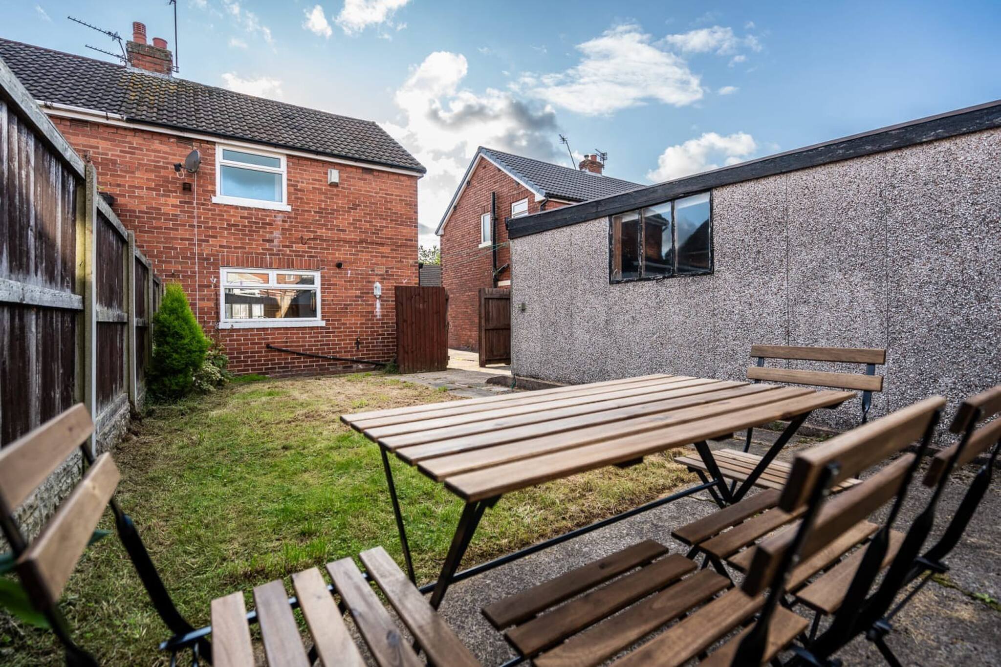 There is a back door that leads to a gate, which will take you into the spacious back garden which has a table and chairs set for relaxing in the summer sun.